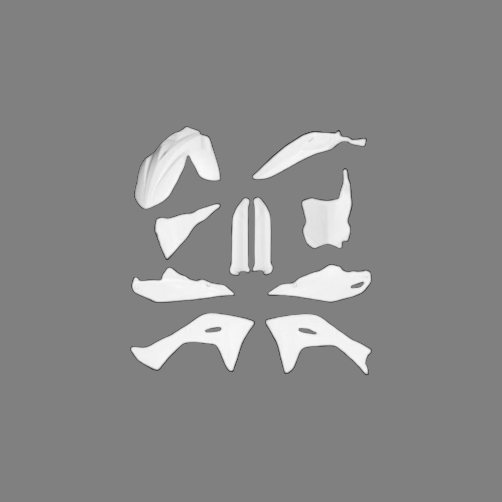 - Kits include: side panels, front fender, front number plate, lower fork cover set, radiator scoops, air box cover and rear fender.