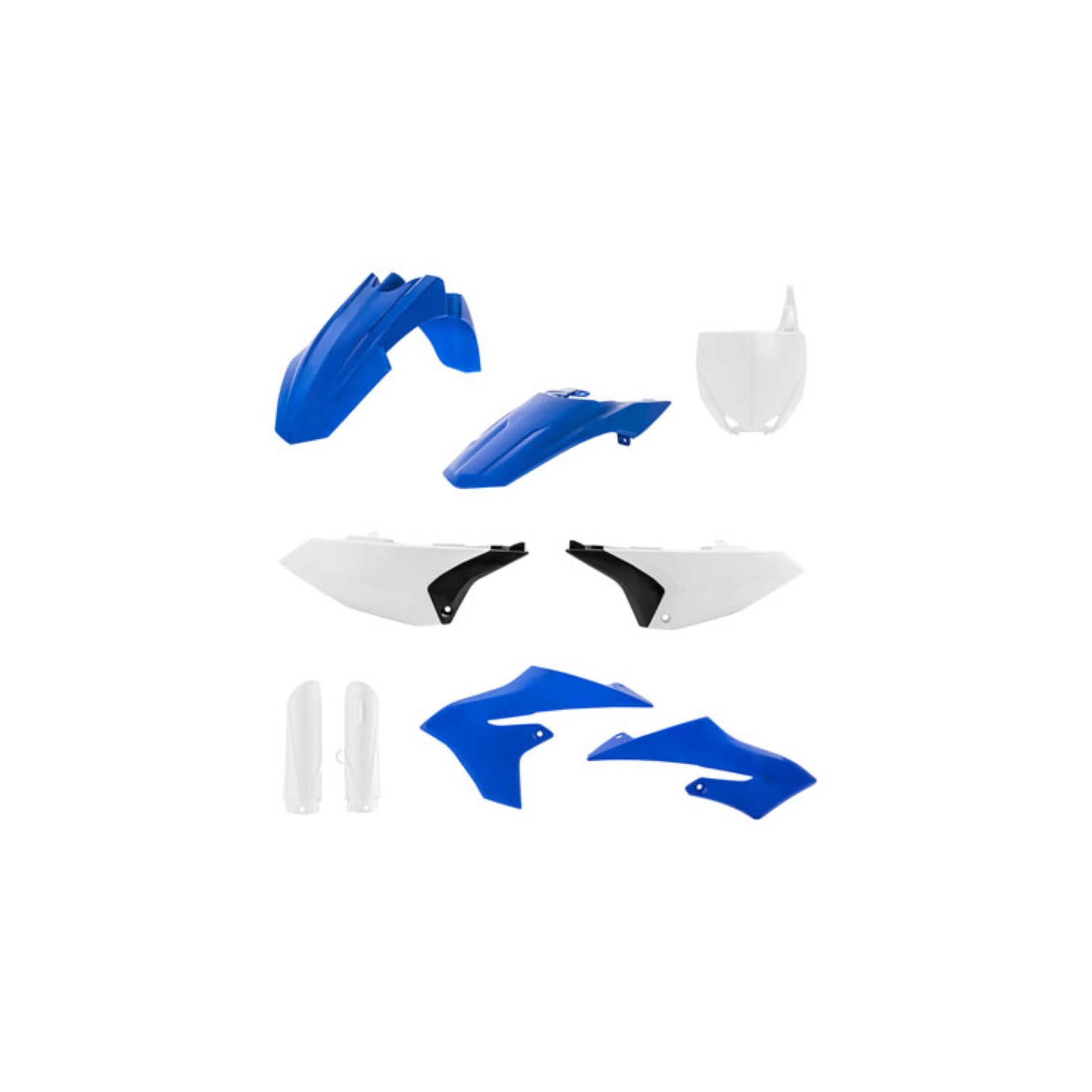 Kits include: side panels, front fender, front number plate, lower fork cover set, radiator scoops and rear fender.